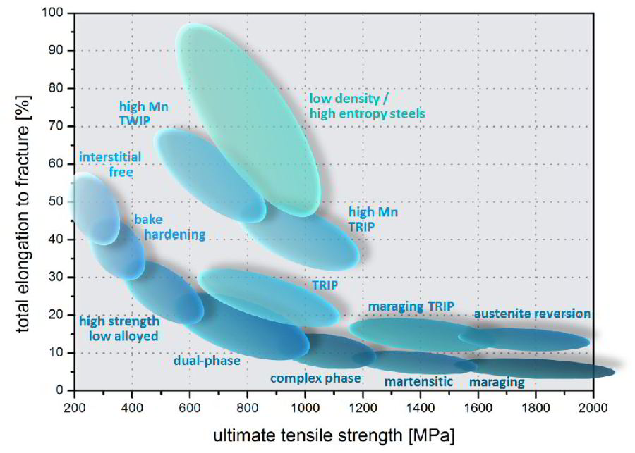 ductility could alleviate some of these concerns by reducing weight and improving energy efficiency. However, most metallurgical mechanisms for increasing strength lead to ductility