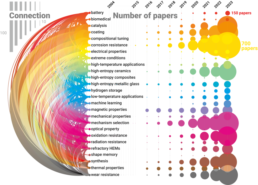 The vastness of the compositional and structural landscape is currently the primary bottleneck preventing the rational design of new HEA systems. Theoretical exploration must move beyond trial-and-error toward AI-guided strategies that account for thermodynamics, kinetics, and synthesis-related contamination. This is a severe challenge; for even a modest system of 100 atoms, the number of possible configurations is astronomical, making exhaustive exploration impossible.